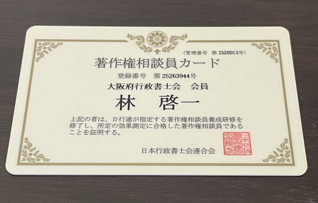 そのような手続きに関しては、著作権相談員をはじめとする行政書士がサポートできる場面ですので、ぜひご活用いただければと思います。